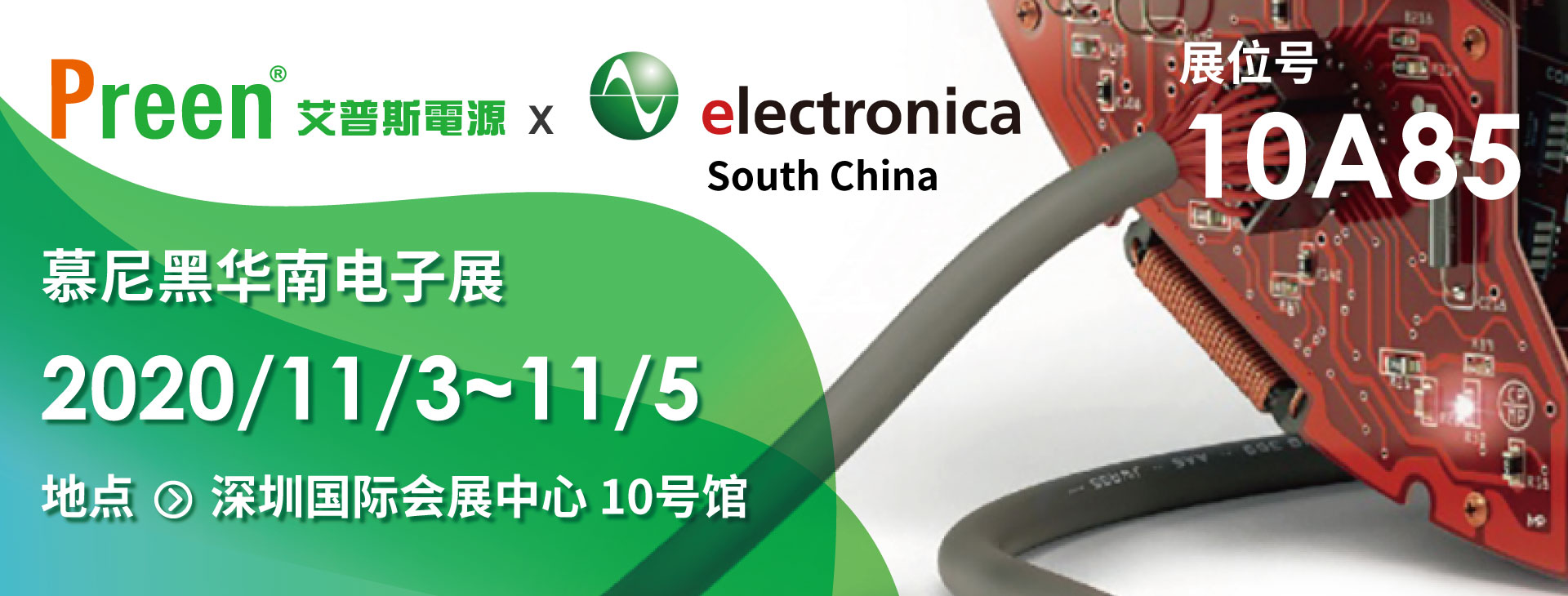 艾普斯電源邀請(qǐng)您一同參與 2020華南慕尼黑電子展。11月3日至5日(共3天)艾普斯電源將于深圳國際會(huì)展中心(寶安新館)參加首屆的華南慕尼黑電子展攤位地點(diǎn)位于10A館展位85號(hào)。